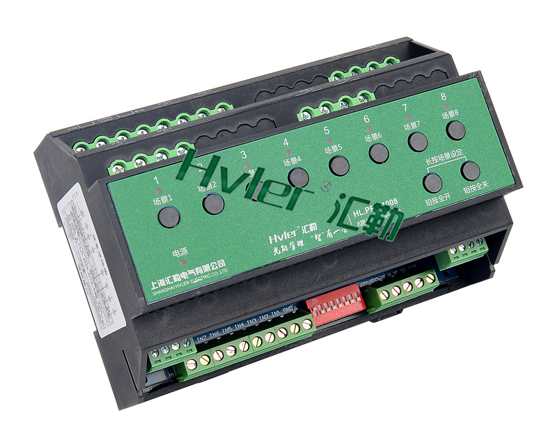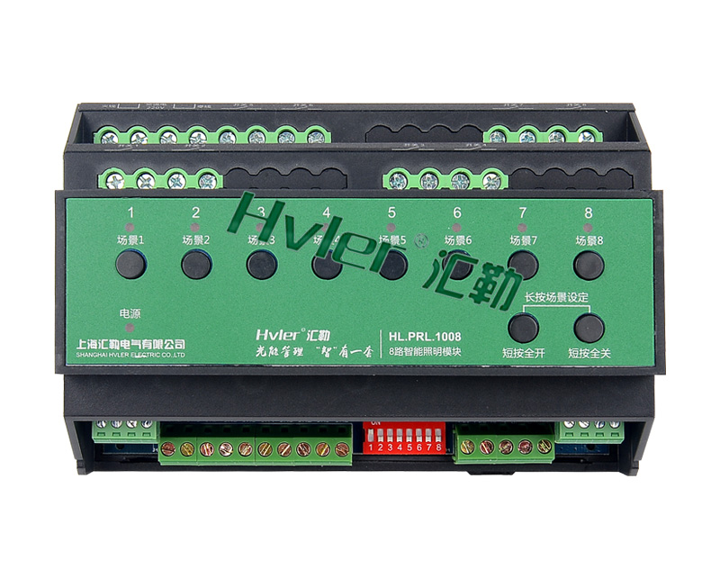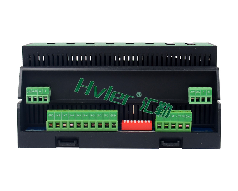 1,標(biāo)準(zhǔn)導(dǎo)軌式安裝占4個模數(shù)位; 2,提供8路16A繼電器開關(guān),每回來可獨(dú)立控制3300W設(shè)備開關(guān); 3,可設(shè)置各回路的開機(jī)初始值; 4,具備多回路順序延時啟動功能,避免同時啟動造成對電網(wǎng)的沖擊; 5,設(shè)置兩組互鎖模式,能控制4組窗簾;; 6,設(shè)置3互鎖模式,能控制兩臺中央空調(diào)的低速、中速和高速檔位; 7,執(zhí)行場景命令后立即向監(jiān)控中心返回各個回路的實(shí)際開關(guān)狀態(tài); 8,具有本機(jī)及遠(yuǎn)程編程、測試功能; 9,自帶應(yīng)急開關(guān)按鍵,方便調(diào)試; 10,自帶回路狀態(tài)指示燈,開關(guān)狀態(tài)一目了然; 11,支持在線刷新程序; 12,采用HVLER-Net總線通信; | 1、設(shè)備供電電壓:AC 220V; 2、受控回路:8路常開繼電器; 3、回路開關(guān)負(fù)載(阻性):AC 250V/抗浪涌能力達(dá)到170A 以上; 4、最大切換電流:16A; 5、機(jī)械耐久性:10000000次; 6、控制接口:Modbus RTU接口 X2; 7、安裝方式:標(biāo)準(zhǔn)35mm導(dǎo)軌式安裝結(jié)構(gòu); 8、顯示界面:9 X LED; 9、消防接口:干接點(diǎn)信號,DC 24V信號; 10、內(nèi)置電源:DC 24V 5W。 | 本產(chǎn)品為導(dǎo)軌式安裝,含8路智能繼電器,每回路可獨(dú)立控制3300W燈具的開關(guān),帶應(yīng)急按鍵,LED燈時時指示各個回路開關(guān)狀態(tài),可設(shè)置為互鎖控制4組窗簾開合; |