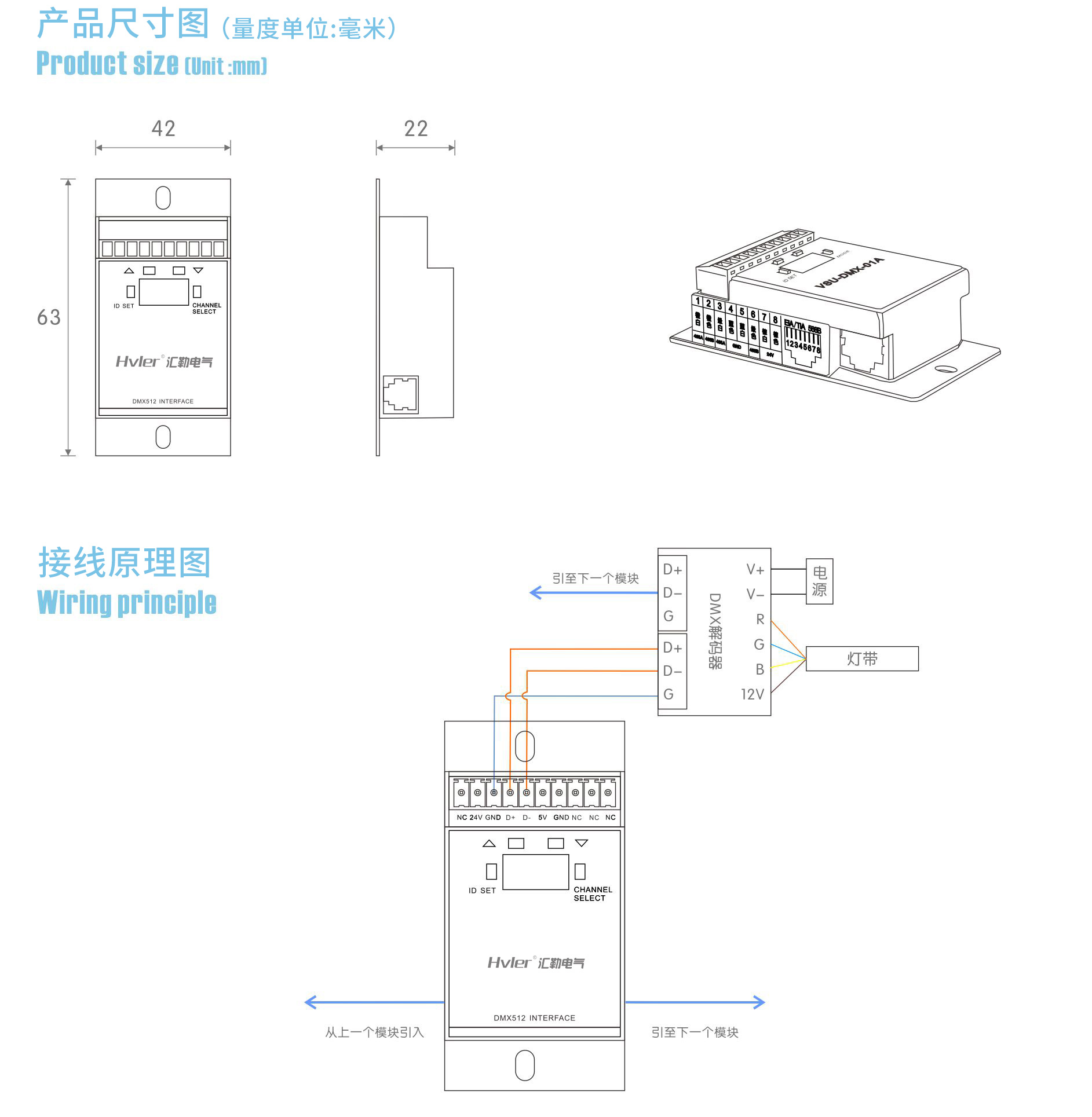通過HVLER-Net總線控制DMX512信號的設(shè)備,可控制8個DMX通道,自帶場景功能,可查詢各個回路狀態(tài);可給LED燈帶、RGB燈帶開關(guān)、調(diào)光、調(diào)色燈; |
